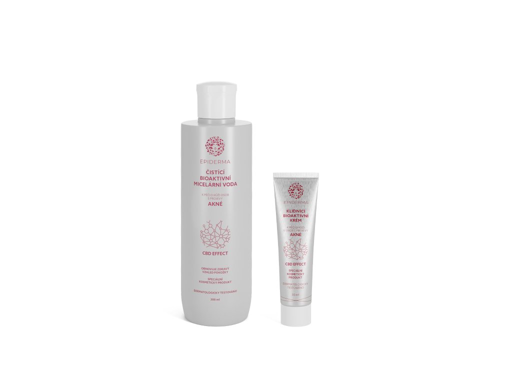 Speciální krém na akné EPIDERMA®,, svým originálním složením bioaktivních látek a přítomností Betuldiolu® , účinně pomáhá zklidnit projevy akné na obličeji, akné na krku i dalších částech pokožky a obnovovat zdravý vzhled pokožky. EPIDERMA® bioaktivní krém na akné má výjimečné čistící a desinfekční schopnosti v zánětlivě změněných folikulech při akné a pomůže Vám vrátit příjemně vláčnou kůži a obnovit zdravý vzhled pokožky. Nerozlučné duo tvoří EPIDERMA® bioaktivní CBD krém při akné 30ml s EPIDERMA® Bioaktivní micelární vodou při akné, která představuje první krok v čištění pleti s akné. Nejen, že se o pleť královsky postará a odstraní z ní veškeré nečistoty, ale pomáhá šetrně odlíčit make-up.