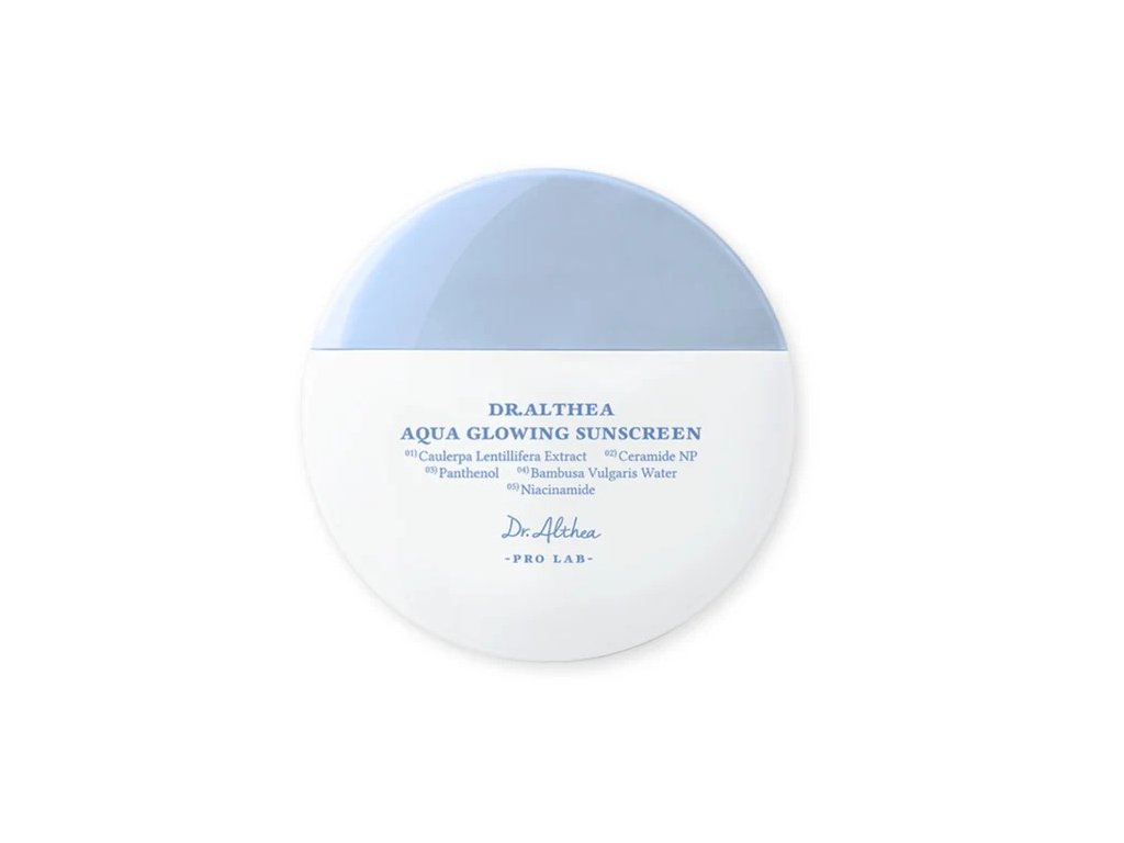 Dr. Althea Aqua Glowing Sunscreen SPF50+ PA++++ je ultralehký hydratační opalovací krém, který poskytuje vysokou ochranu proti UVA a UVB záření díky SPF 50+ a PA++++. Jeho jemná, vodní–krémová textura se rychle vstřebává bez lepivého či mastného pocitu a nezanechává bílý film (white cast). Produkt je navržen tak, aby pokožku chránil před sluncem, zároveň hydratoval, zklidňoval a posiloval kožní bariéru – ideální pro každodenní použití jako součást ranní rutiny i pod make-up.