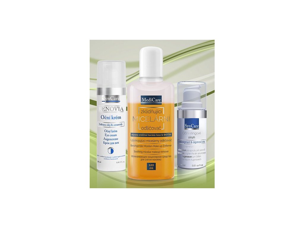 Tématická sada pro péči o pokožku okolo očí. Sada obsahuje: Micelární odličovač očního okolí, Oční liftingové sérum, RENOVIA oční krém CPK. V sadě jsou výrobky v klasickém spotřebitelském balení. Objemy nejsou nijak zmenšeny. V ceně sady je dárková taška se zipem.Použití
