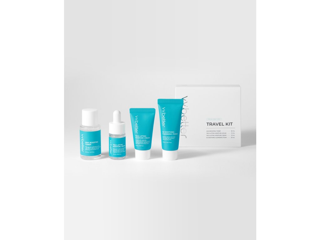 Mini cestovní sada VVbetter nabízí čisticí pěnu, tonikum, sérum a krém v praktickém balení pro kompletní péči o pleť